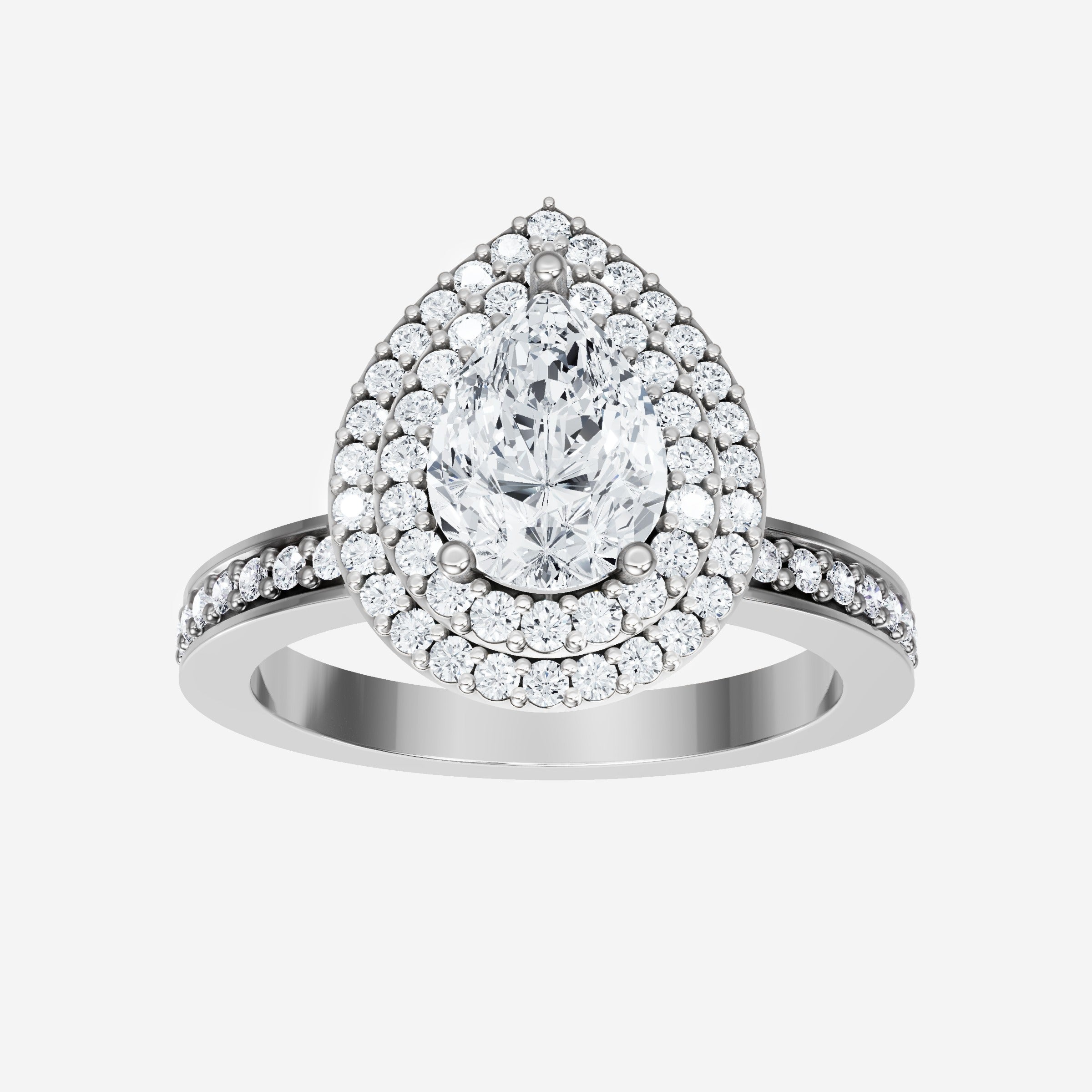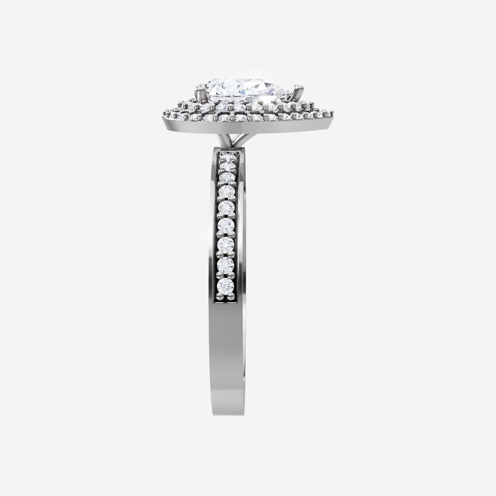 You’ve designed a ring that reflects lasting elegance and grace! Crafted from 950 Platinum, this exquisite Pear lab-grown diamond is the centerpiece of this unique design. This Single Pave Shank with a Double Halo head showcases the brilliance of the Pear diamond, creating a timeless look. With this ring, celebrate every moment of joy, success, and love.