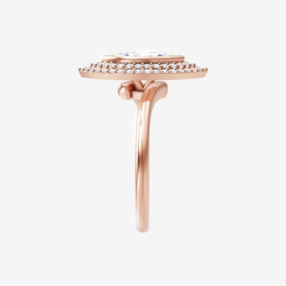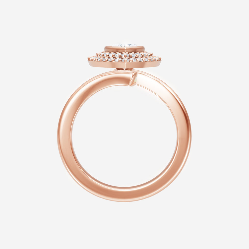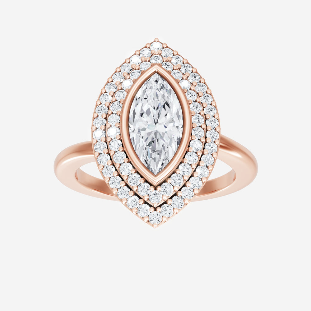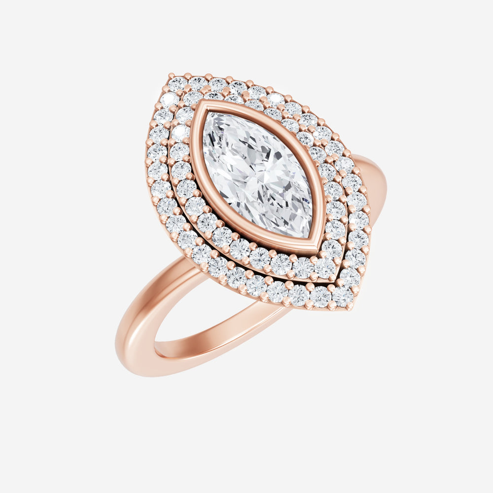 You’ve designed a ring that reflects lasting elegance and grace! Crafted from 18K Rose Gold, this exquisite Marquise lab-grown diamond is the centerpiece of this unique design. This Bypass Shank with a Bezel Set Center With Double Halo head showcases the brilliance of the Marquise diamond, creating a timeless look. A perfect choice to celebrate love, commitment, and everything in between.