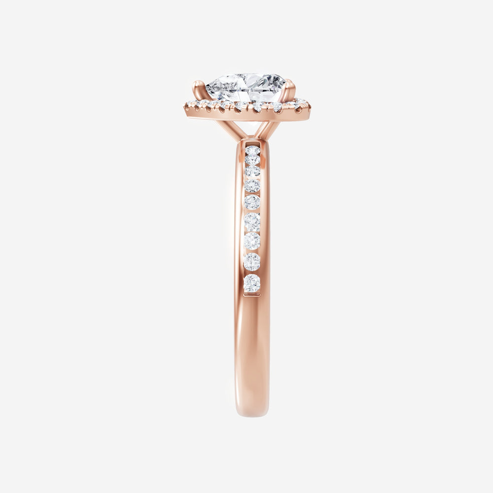 You’ve designed a ring that reflects lasting elegance and grace! Crafted from 14k Rose Gold, this exquisite Heart lab-grown diamond is the centerpiece of this unique design. This Channel Set Shank with a 3 Prong Micro head showcases the brilliance of the Heart diamond, creating a timeless look. This stunning ring makes the perfect symbol of everlasting love and devotion.