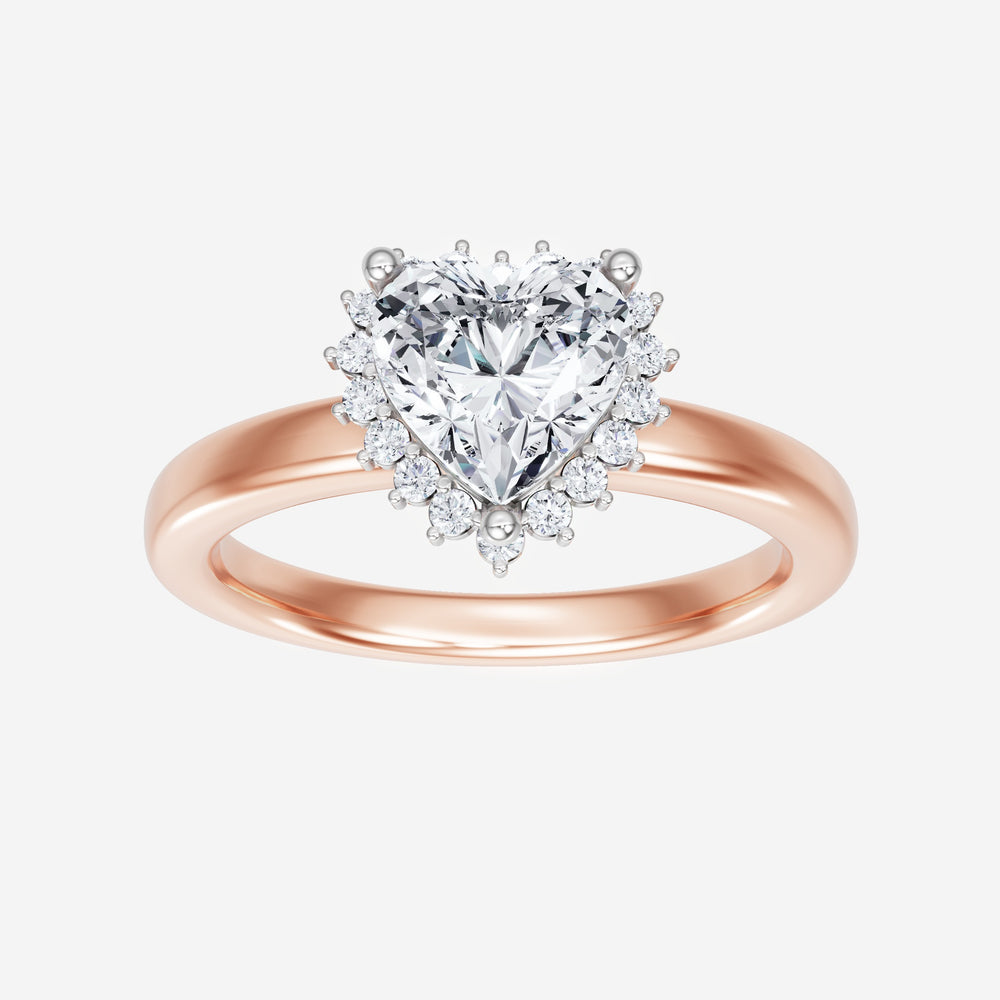 You’ve designed a ring that reflects lasting elegance and grace! Crafted from 14k Rose White Dual Tone, this exquisite Heart lab-grown diamond is the centerpiece of this unique design. This Basic Plain Shank with a 3 Prong Diana Halo head showcases the brilliance of the Heart diamond, creating a timeless look. This elegant piece is the perfect symbol of love, strength, and timeless beauty.