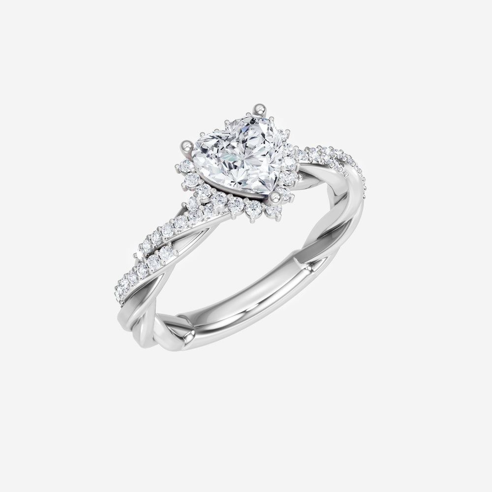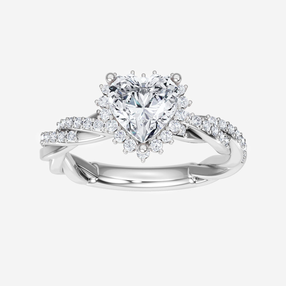 You’ve designed a ring that reflects lasting elegance and grace! Crafted from 14K White Gold, this exquisite Heart lab-grown diamond is the centerpiece of this unique design. This Rope Diamond Shank with a 3 Prong Diana Halo head showcases the brilliance of the Heart diamond, creating a timeless look. It's a piece of elegance and beauty, perfect for marking life's most beautiful occasions.