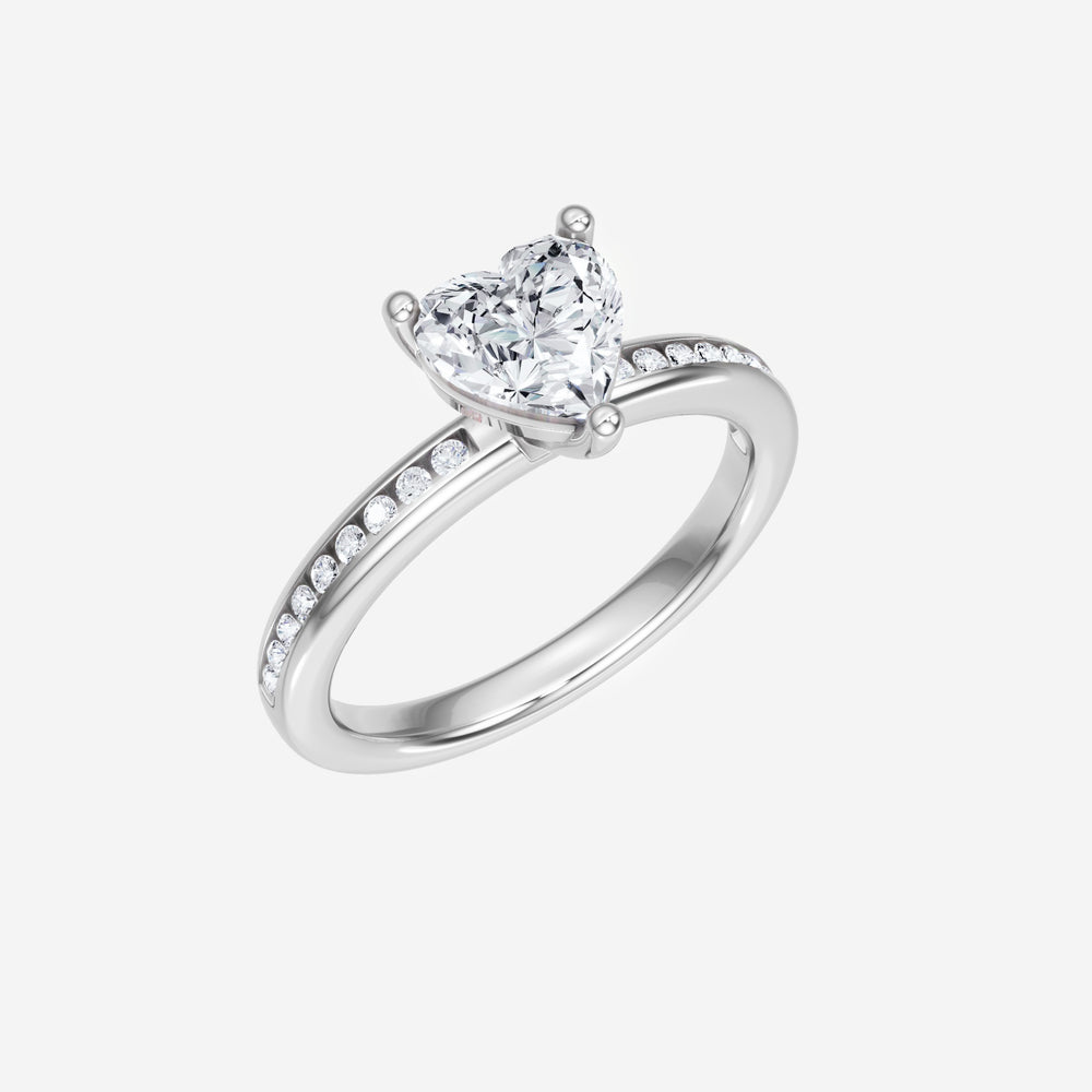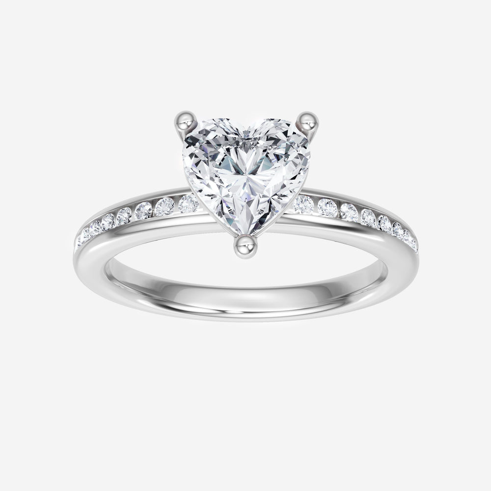 You’ve designed a ring that reflects lasting elegance and grace! Crafted from 14K White Gold, this exquisite Heart lab-grown diamond is the centerpiece of this unique design. This Channel Set Shank with a 3 Prong Head head showcases the brilliance of the Heart diamond, creating a timeless look. Whether as a gift or a personal treasure, this ring will forever symbolize the most meaningful moments in life.