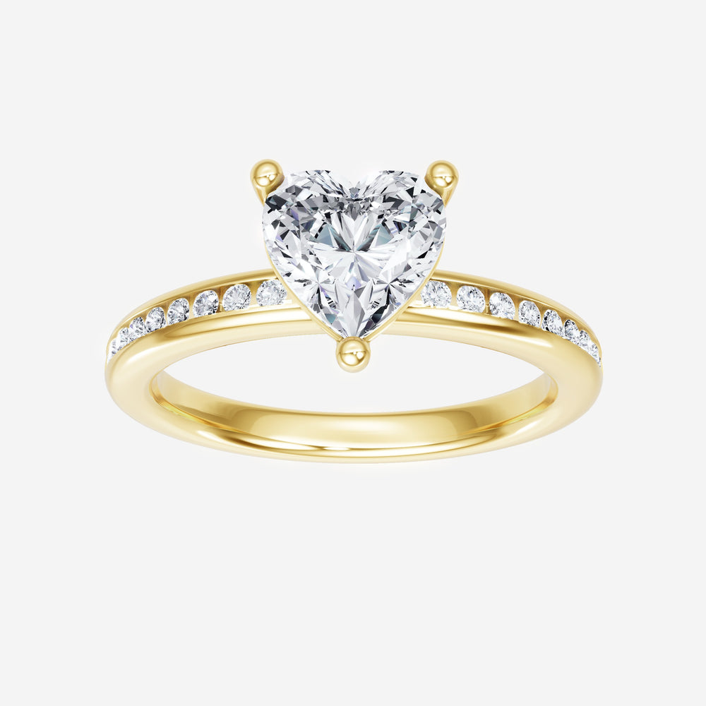 You’ve designed a ring that reflects lasting elegance and grace! Crafted from 14K Yellow Gold, this exquisite Heart lab-grown diamond is the centerpiece of this unique design. This Channel Set Shank with a 3 Prong Head head showcases the brilliance of the Heart diamond, creating a timeless look. This ring will become a cherished reminder of life's most treasured moments.