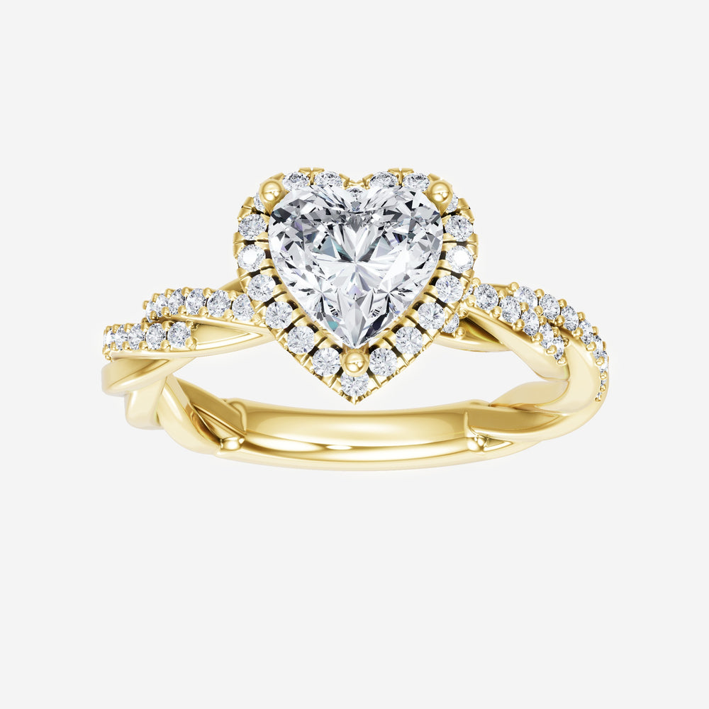 You’ve designed a ring that reflects lasting elegance and grace! Crafted from 14K Yellow Gold, this exquisite Heart lab-grown diamond is the centerpiece of this unique design. This Rope Diamond Shank with a 3 Prong Micro head showcases the brilliance of the Heart diamond, creating a timeless look. This elegant piece is the perfect symbol of love, strength, and timeless beauty.