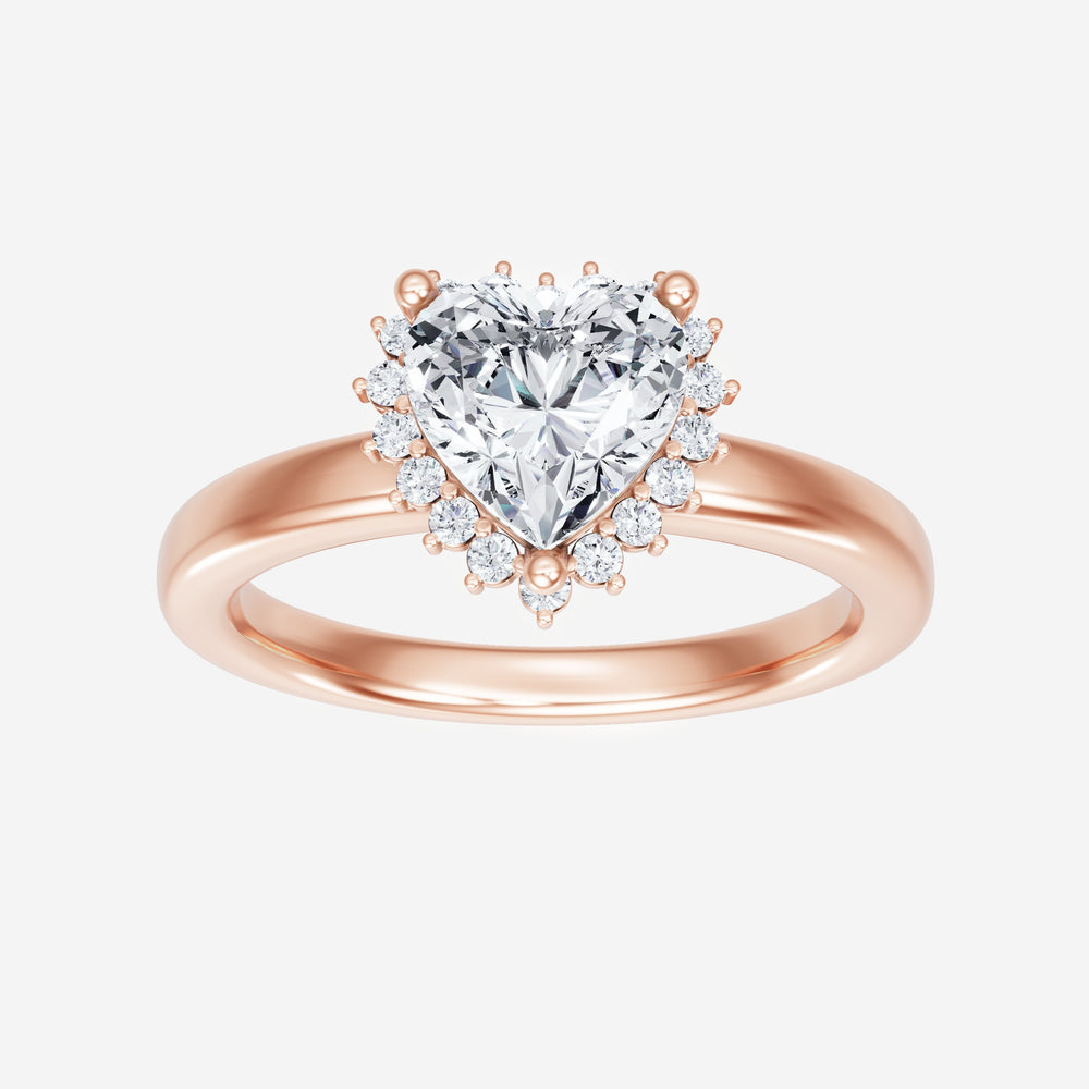 You’ve designed a ring that reflects lasting elegance and grace! Crafted from 18K Rose Gold, this exquisite Heart lab-grown diamond is the centerpiece of this unique design. This Basic Plain Shank with a 3 Prong Diana Halo head showcases the brilliance of the Heart diamond, creating a timeless look. With this ring, celebrate every moment of joy, success, and love.