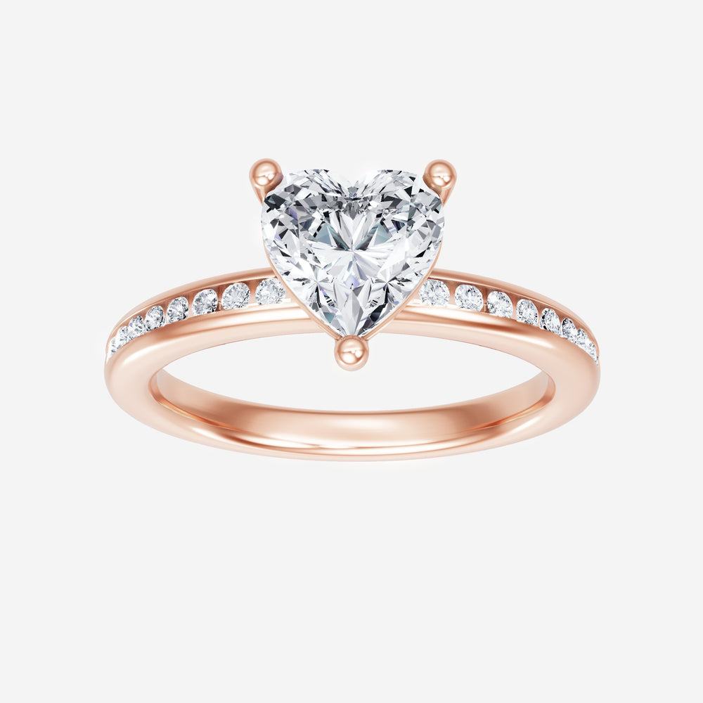 You’ve designed a ring that reflects lasting elegance and grace! Crafted from 18K Rose Gold, this exquisite Heart lab-grown diamond is the centerpiece of this unique design. This Channel Set Shank with a 3 Prong Head head showcases the brilliance of the Heart diamond, creating a timeless look. Whether as a gift or a personal treasure, this ring will forever symbolize the most meaningful moments in life.