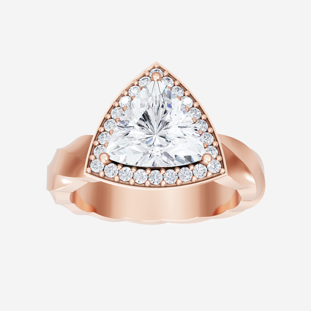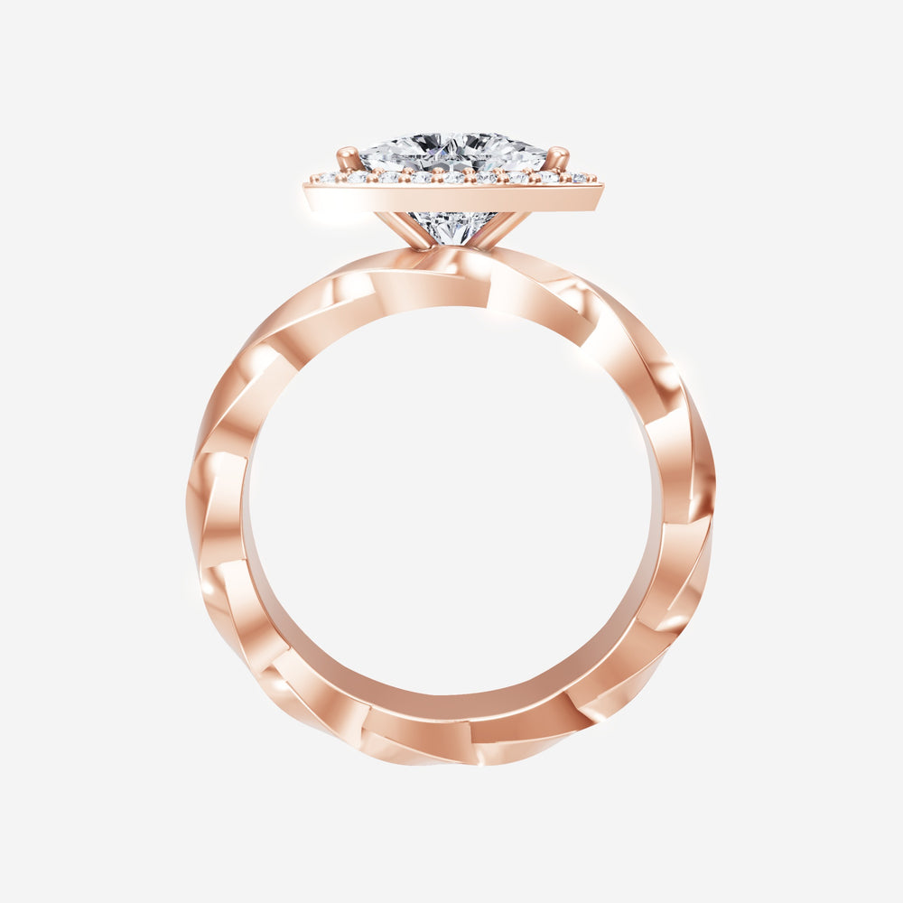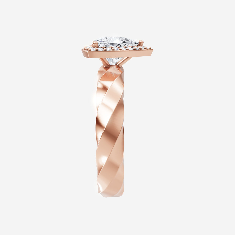 You’ve designed a ring that reflects lasting elegance and grace! Crafted from 18K Rose Gold, this exquisite Heart lab-grown diamond is the centerpiece of this unique design. This Twisted Shank with a 3 Prong Single Halo head showcases the brilliance of the Heart diamond, creating a timeless look. This ring will become a cherished reminder of life's most treasured moments.