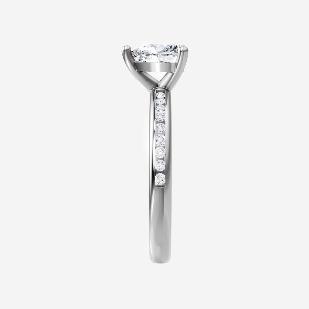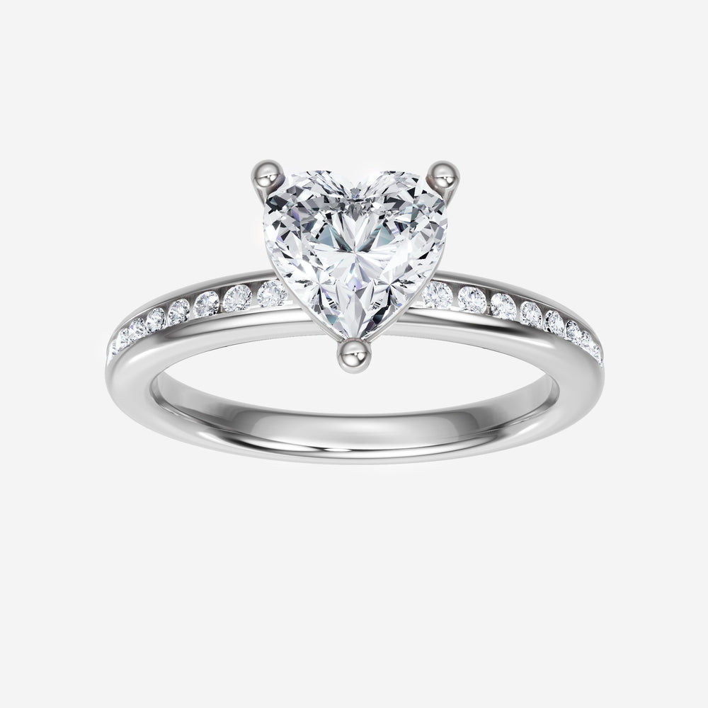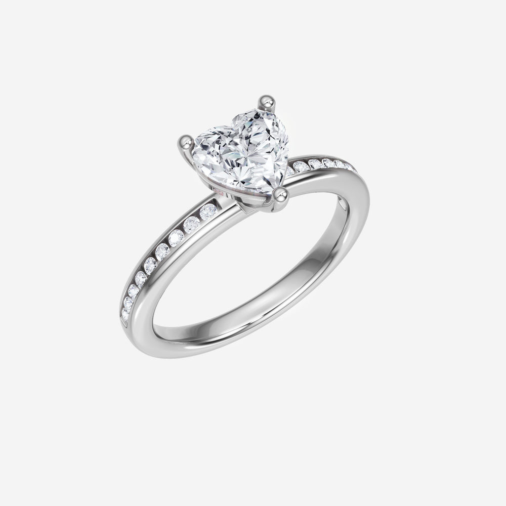 You’ve designed a ring that reflects lasting elegance and grace! Crafted from 18K White Gold, this exquisite Heart lab-grown diamond is the centerpiece of this unique design. This Channel Set Shank with a 3 Prong Head head showcases the brilliance of the Heart diamond, creating a timeless look. This elegant piece is the perfect symbol of love, strength, and timeless beauty.