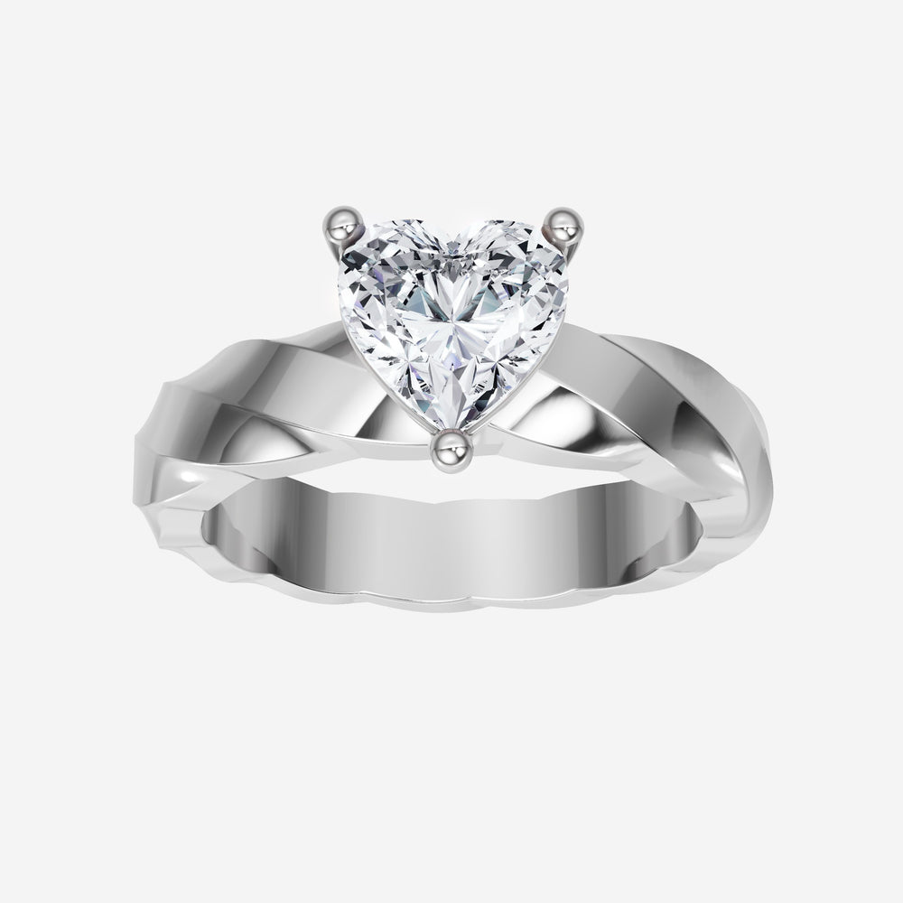 You’ve designed a ring that reflects lasting elegance and grace! Crafted from 18K White Gold, this exquisite Heart lab-grown diamond is the centerpiece of this unique design. This Twisted Shank with a 3 Prong Head head showcases the brilliance of the Heart diamond, creating a timeless look. With this ring, celebrate every moment of joy, success, and love.
