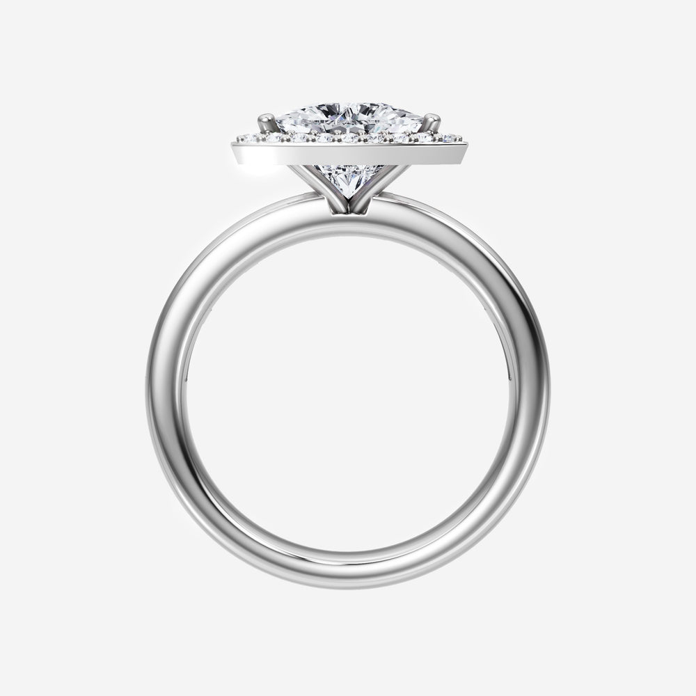You’ve designed a ring that reflects lasting elegance and grace! Crafted from 18K White Gold, this exquisite Heart lab-grown diamond is the centerpiece of this unique design. This Channel Set Shank with a 3 Prong Single Halo head showcases the brilliance of the Heart diamond, creating a timeless look. Ideal for those who seek both beauty and meaning, this ring will stand as a testament to cherished memories.