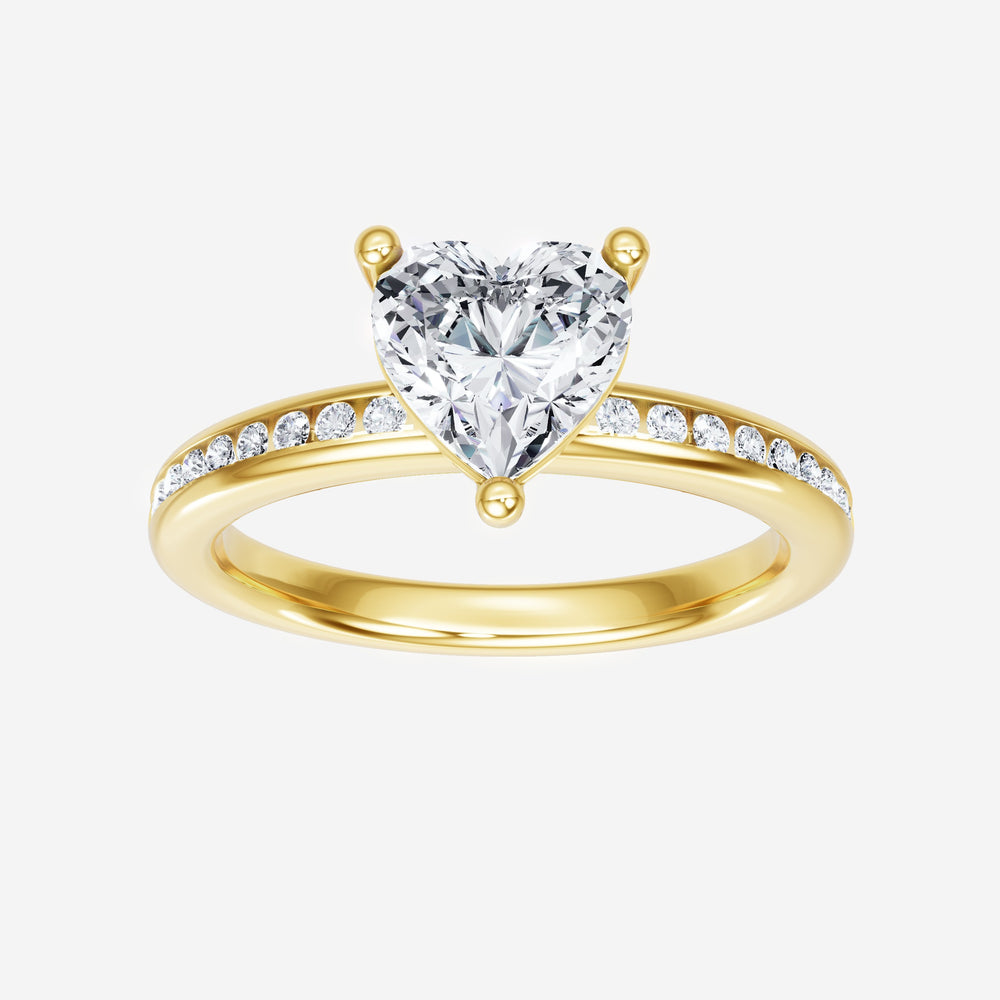 You’ve designed a ring that reflects lasting elegance and grace! Crafted from 18K Yellow Gold, this exquisite Heart lab-grown diamond is the centerpiece of this unique design. This Channel Set Shank with a 3 Prong Head head showcases the brilliance of the Heart diamond, creating a timeless look. A perfect choice to celebrate love, commitment, and everything in between.