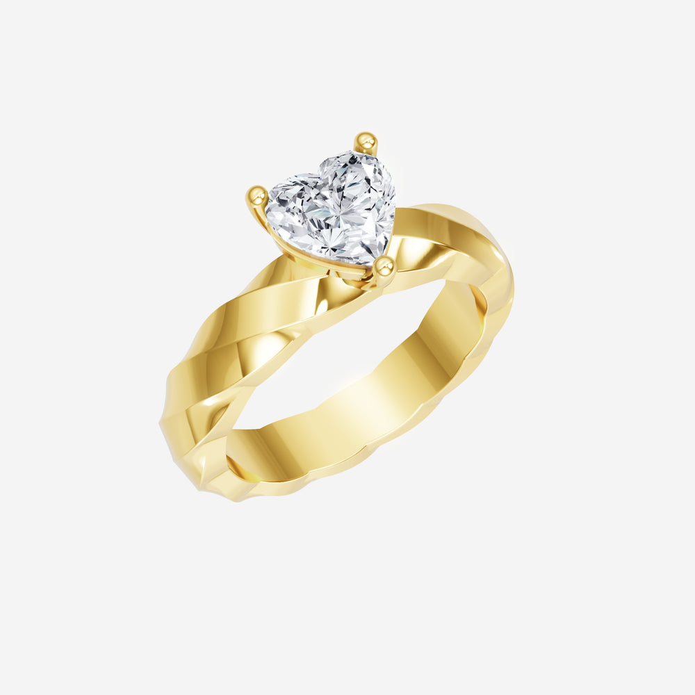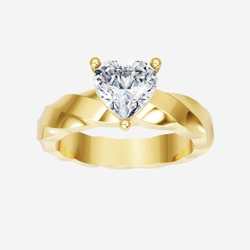 You’ve designed a ring that reflects lasting elegance and grace! Crafted from 18K Yellow Gold, this exquisite Heart lab-grown diamond is the centerpiece of this unique design. This Twisted Shank with a 3 Prong Head head showcases the brilliance of the Heart diamond, creating a timeless look. It's a piece of elegance and beauty, perfect for marking life's most beautiful occasions.