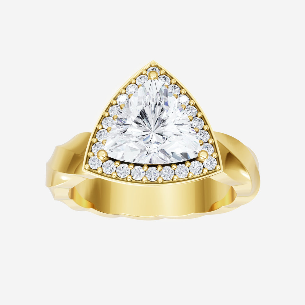 You’ve designed a ring that reflects lasting elegance and grace! Crafted from 18K Yellow Gold, this exquisite Heart lab-grown diamond is the centerpiece of this unique design. This Twisted Shank with a 3 Prong Single Halo head showcases the brilliance of the Heart diamond, creating a timeless look. This stunning ring makes the perfect symbol of everlasting love and devotion.