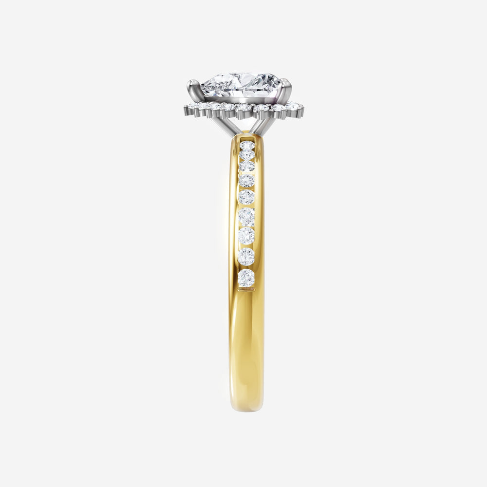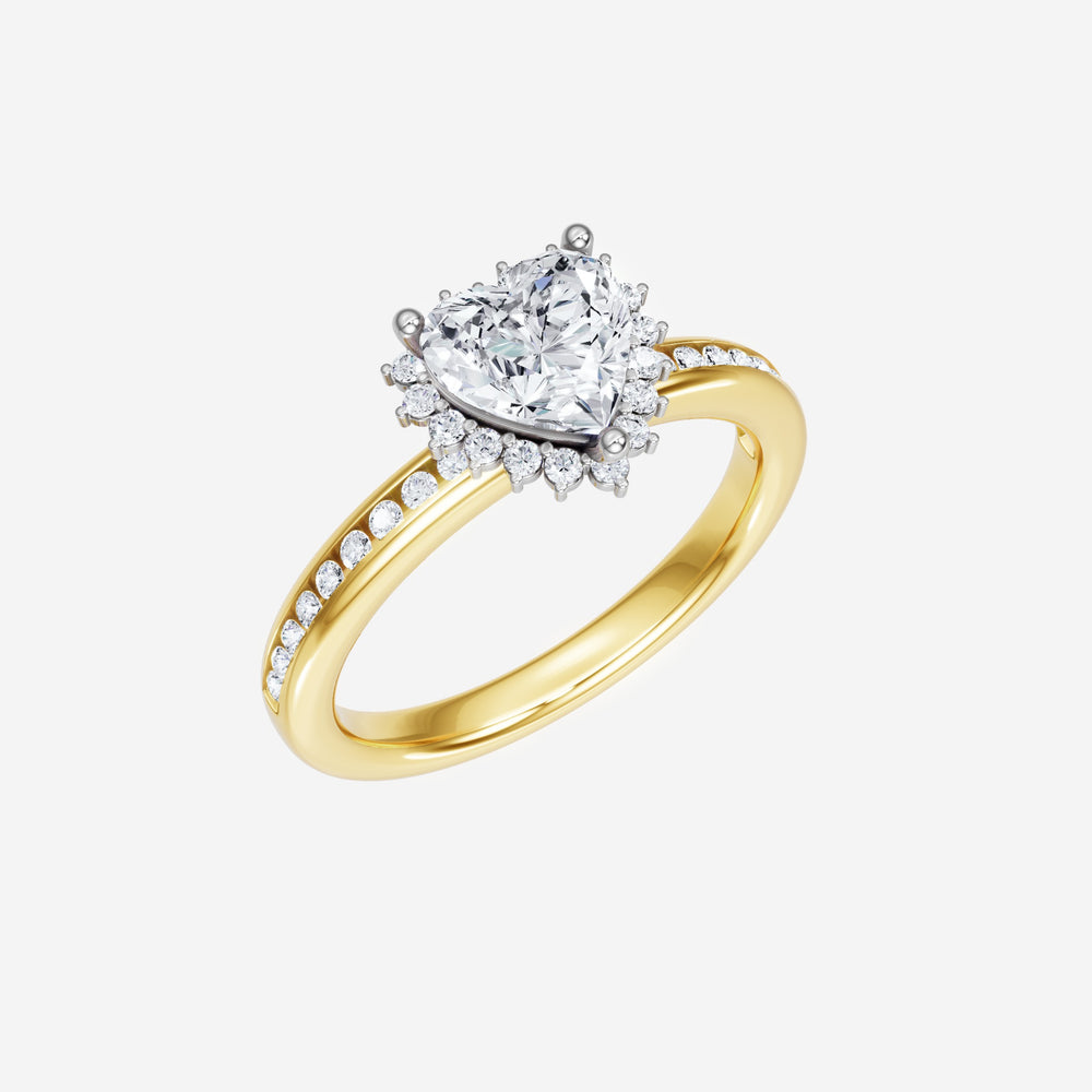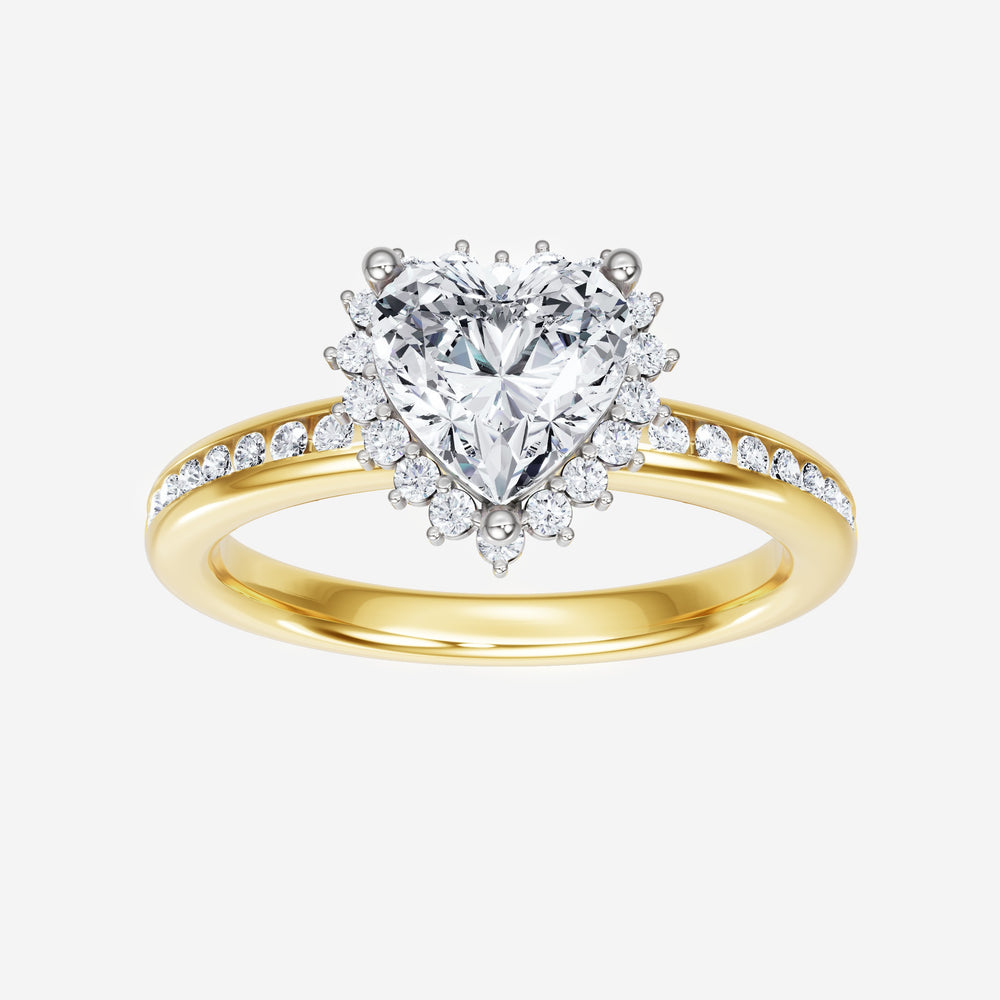 You’ve designed a ring that reflects lasting elegance and grace! Crafted from 18k Yellow White Dual Tone, this exquisite Heart lab-grown diamond is the centerpiece of this unique design. This Channel Set Shank with a 3 Prong Diana Halo head showcases the brilliance of the Heart diamond, creating a timeless look. A perfect choice to celebrate love, commitment, and everything in between.