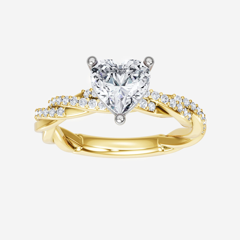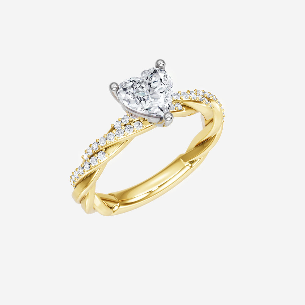 You’ve designed a ring that reflects lasting elegance and grace! Crafted from 18k Yellow White Dual Tone, this exquisite Heart lab-grown diamond is the centerpiece of this unique design. This Rope Diamond Shank with a 3 Prong Head head showcases the brilliance of the Heart diamond, creating a timeless look. This elegant piece is the perfect symbol of love, strength, and timeless beauty.