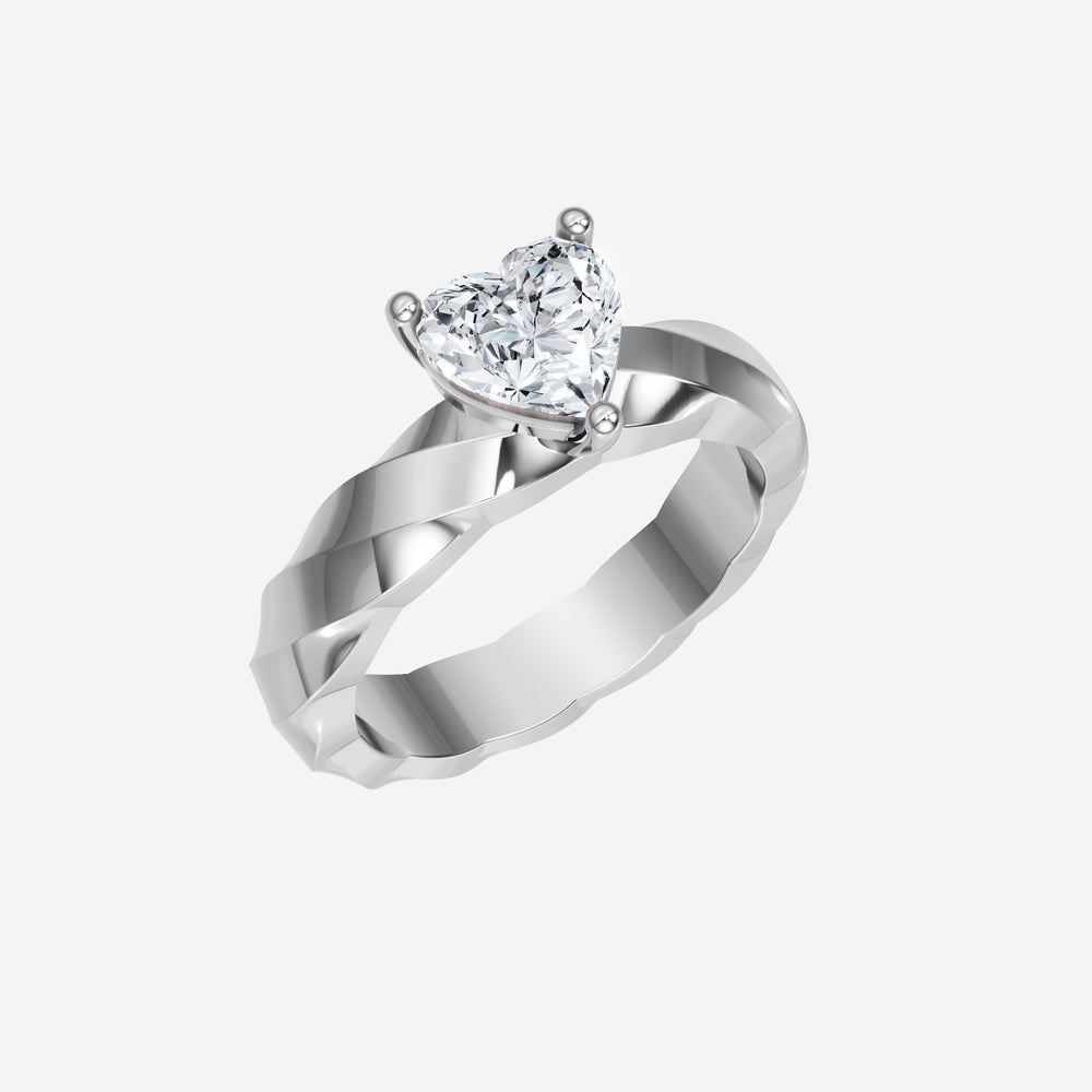 You’ve designed a ring that reflects lasting elegance and grace! Crafted from 950 Platinum, this exquisite Heart lab-grown diamond is the centerpiece of this unique design. This Twisted Shank with a 3 Prong Head head showcases the brilliance of the Heart diamond, creating a timeless look. It's a piece of elegance and beauty, perfect for marking life's most beautiful occasions.