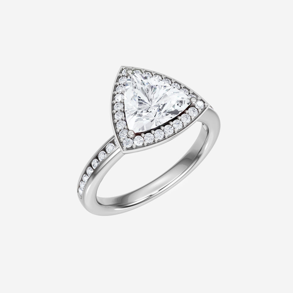 You’ve designed a ring that reflects lasting elegance and grace! Crafted from 950 Platinum, this exquisite Heart lab-grown diamond is the centerpiece of this unique design. This Channel Set Shank with a 3 Prong Single Halo head showcases the brilliance of the Heart diamond, creating a timeless look. This ring will become a cherished reminder of life's most treasured moments.