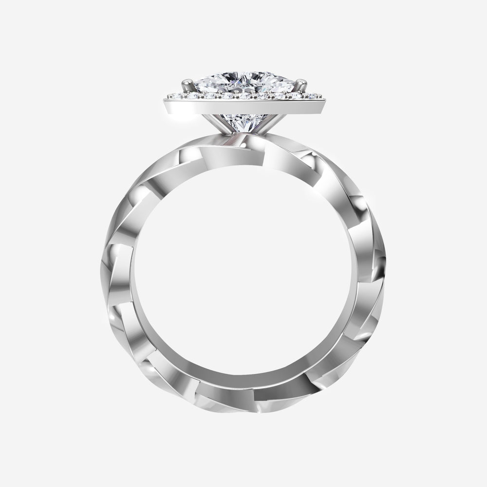 You’ve designed a ring that reflects lasting elegance and grace! Crafted from 950 Platinum, this exquisite Heart lab-grown diamond is the centerpiece of this unique design. This Twisted Shank with a 3 Prong Single Halo head showcases the brilliance of the Heart diamond, creating a timeless look. Ideal for those who seek both beauty and meaning, this ring will stand as a testament to cherished memories.