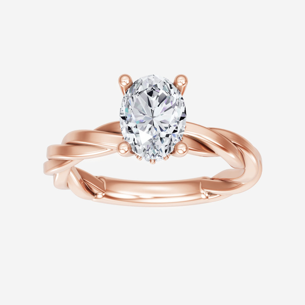 You’ve designed a ring that reflects lasting elegance and grace! Crafted from 14k Rose Gold, this exquisite Oval lab-grown diamond is the centerpiece of this unique design. This Rope Plain Shank with a Hidden Halo head showcases the brilliance of the Oval diamond, creating a timeless look. This elegant piece is the perfect symbol of love, strength, and timeless beauty.