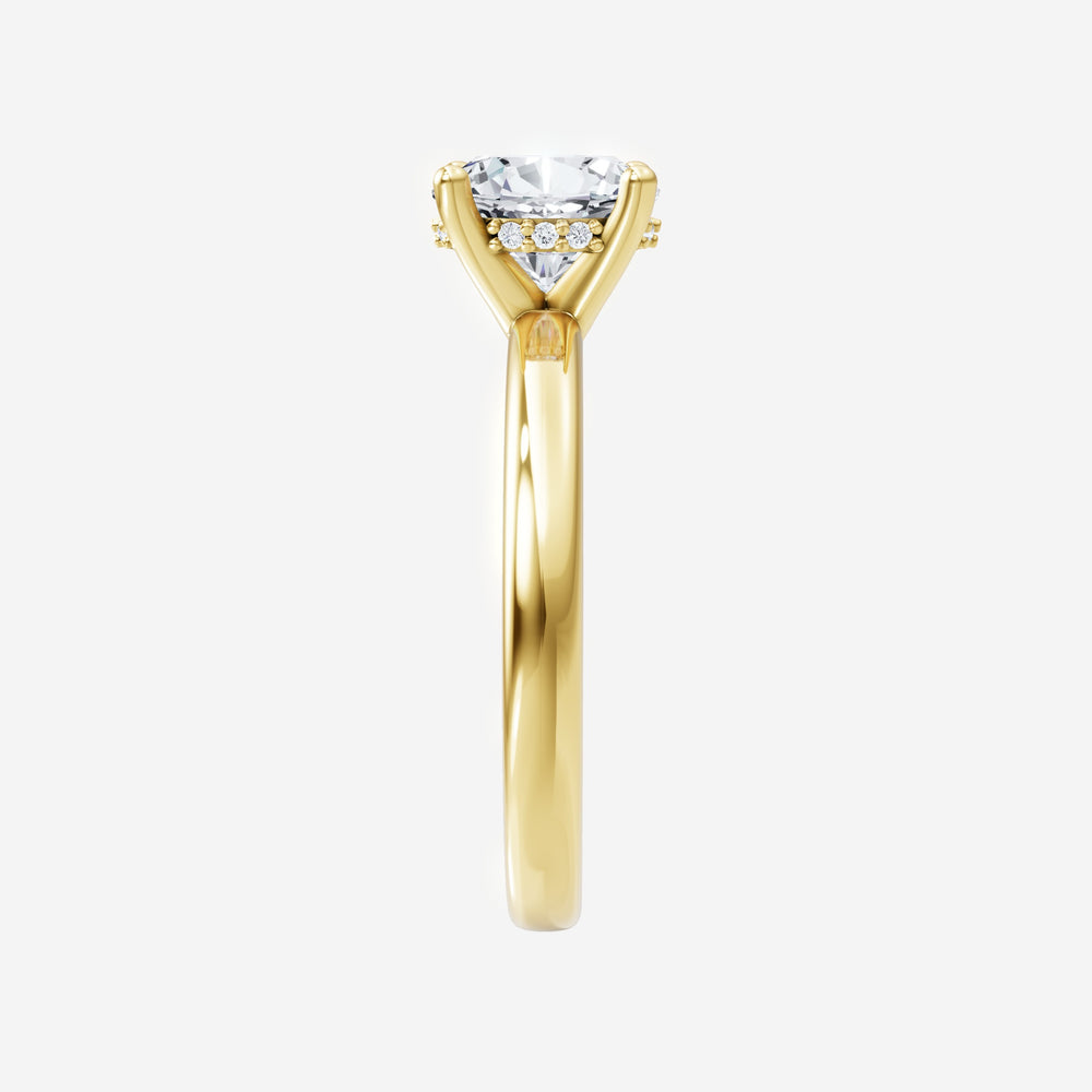 You’ve designed a ring that reflects lasting elegance and grace! Crafted from 14K Yellow Gold, this exquisite Oval lab-grown diamond is the centerpiece of this unique design. This Basic Plain Shank with a Hidden Halo head showcases the brilliance of the Oval diamond, creating a timeless look. This elegant piece is the perfect symbol of love, strength, and timeless beauty.