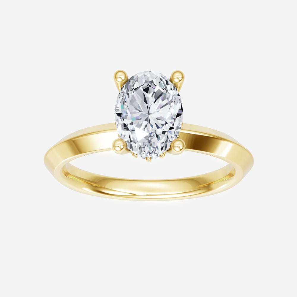 You’ve designed a ring that reflects lasting elegance and grace! Crafted from 14K Yellow Gold, this exquisite Oval lab-grown diamond is the centerpiece of this unique design. This Knife Edge Shank with a Hidden Halo head showcases the brilliance of the Oval diamond, creating a timeless look. Ideal for those who seek both beauty and meaning, this ring will stand as a testament to cherished memories.