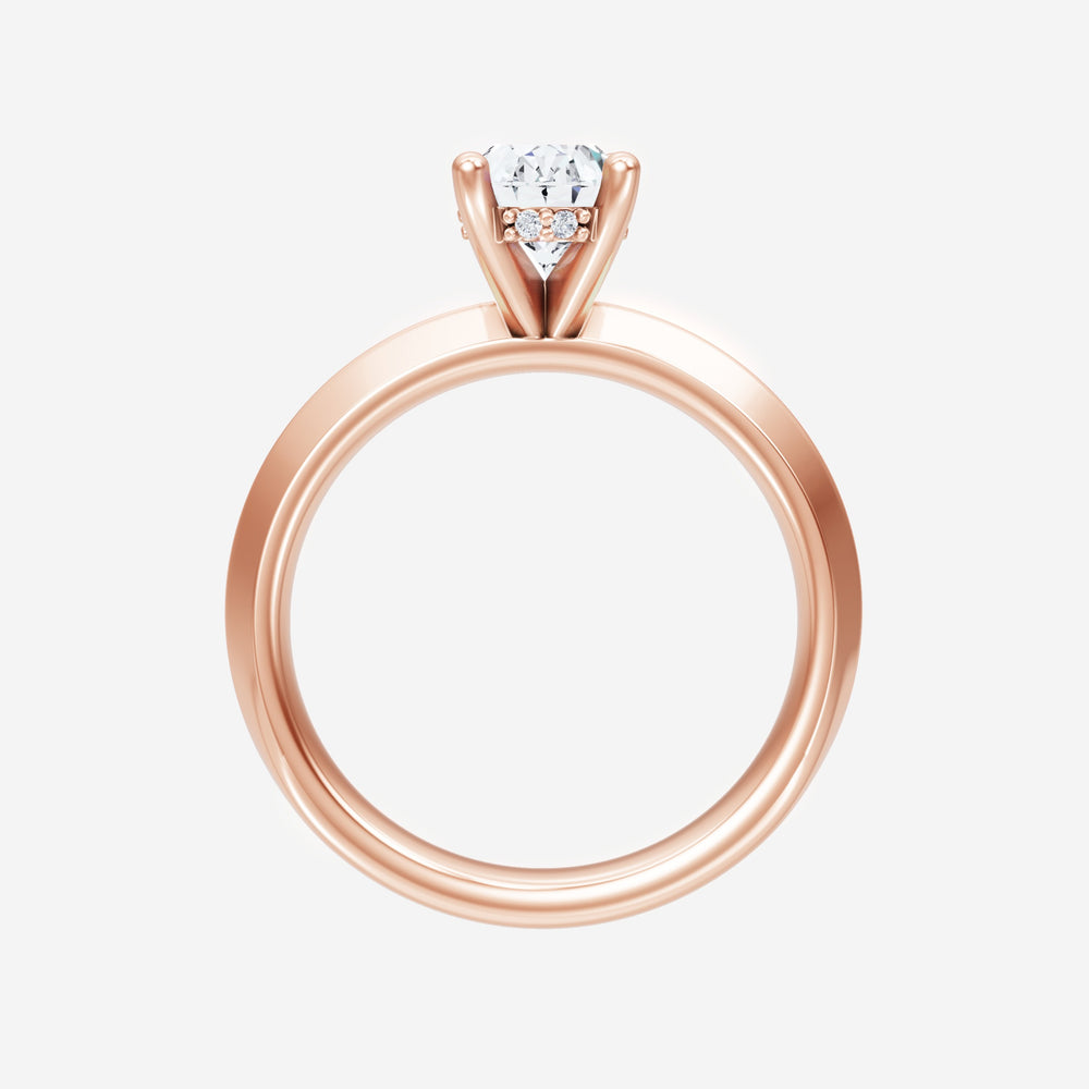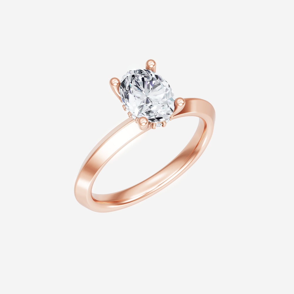 You’ve designed a ring that reflects lasting elegance and grace! Crafted from 18K Rose Gold, this exquisite Oval lab-grown diamond is the centerpiece of this unique design. This Knife Edge Shank with a Hidden Halo head showcases the brilliance of the Oval diamond, creating a timeless look. This ring will become a cherished reminder of life's most treasured moments.