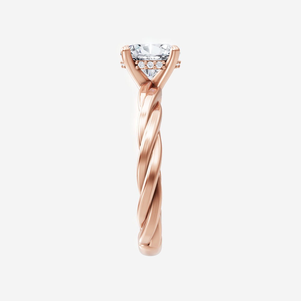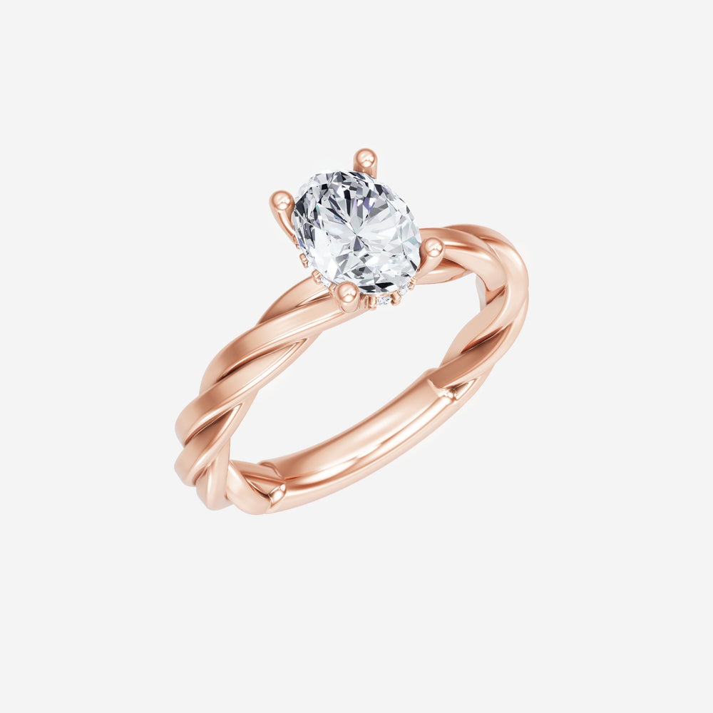 You’ve designed a ring that reflects lasting elegance and grace! Crafted from 18K Rose Gold, this exquisite Oval lab-grown diamond is the centerpiece of this unique design. This Rope Plain Shank with a Hidden Halo head showcases the brilliance of the Oval diamond, creating a timeless look. This elegant piece is the perfect symbol of love, strength, and timeless beauty.