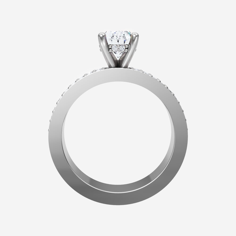 You’ve designed a ring that reflects lasting elegance and grace! Crafted from 18K White Gold, this exquisite Oval lab-grown diamond is the centerpiece of this unique design. This Double Row Pave with a Hidden Halo head showcases the brilliance of the Oval diamond, creating a timeless look. Whether as a gift or a personal treasure, this ring will forever symbolize the most meaningful moments in life.